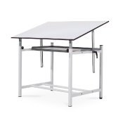 Mesa de oficina ATRIO con ENVÍO EXPRESS de 140-160 x 80cm. y 73-75cm. de altura. Tablero de 25mm. de grosor en blanco u olmo. Estructura metálica resistente y estable en blanco o aluminio. Buena mesa a buen precio.