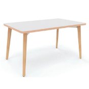 Mesa rectangular con bases metálicas de Euromof, disponible en dos tamaños, cinco colores y tres acabados de base. Tapa de melamina de 30 mm. Capacidad para 6 u 8 personas. Perfecta para reuniones y espacios colaborativos.