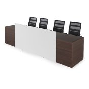 - También conocidas como islas de trabajo, se utilizan (como indica su nombre) para agrupar puestos de trabajo similares en un mismo espacio. Este tipo de mesa de trabajo ayuda a optimizar el rendimiento de grupos de trabajo similar.